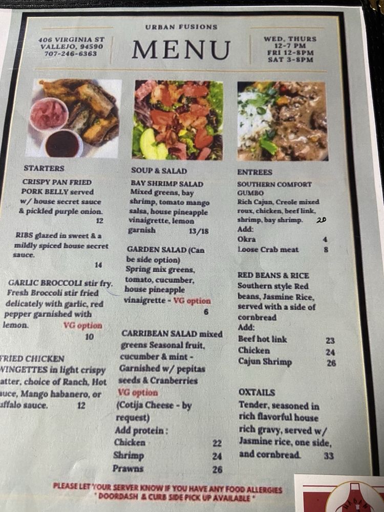 Welcome to Urban Fusions, a charming culinary haven nestled in Vallejo that beautifully marries Southern and Caribbean flavors. This women-owned gem invites you to savor every dish with a commitment to authenticity and quality, from their rich gumbo to succulent oxtails. The atmosphere buzzes with soul, graced by soothing jazz that elevates your dining experience.